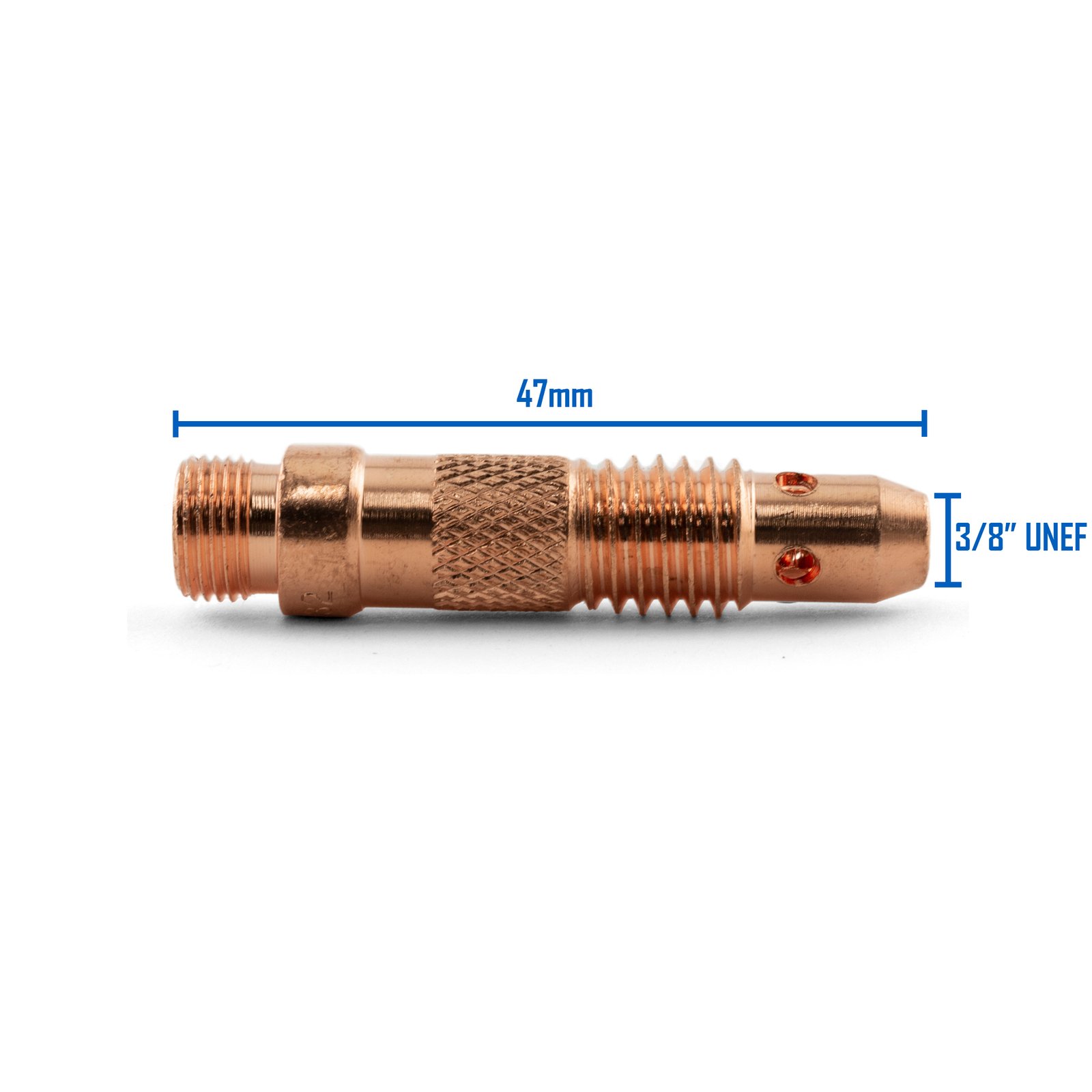 Our collet bodies deliver exceptional heat conductivity and durability, ensuring precise electrode grip and minimal wear. The 3/8″ UNEF thread provides secure torch attachment, while the 47mm length guarantees compatibility with most TIG welding setups. Perfect for both professional welders and industrial manufacturing facilities.