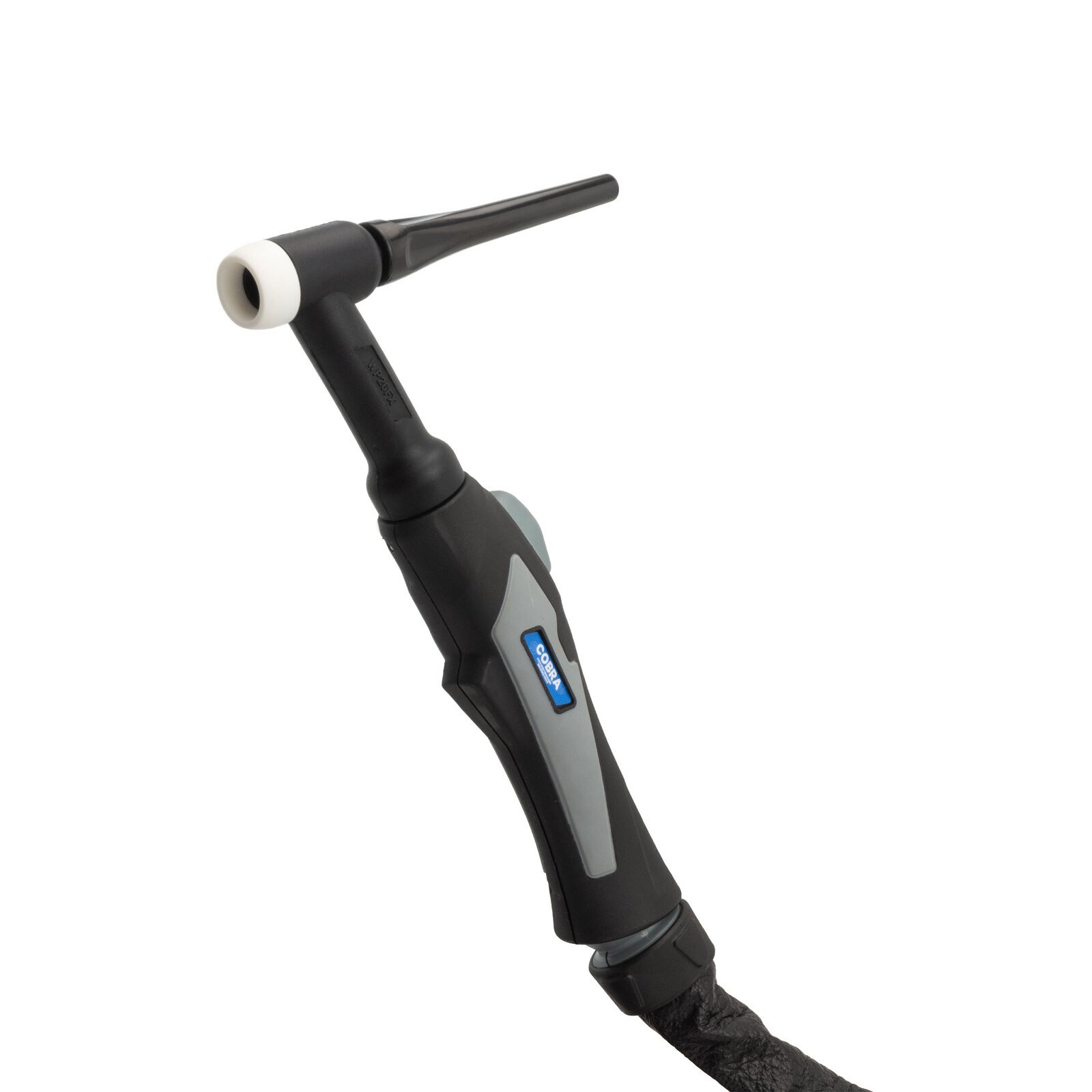 Built for comfort and performance, this COBRA TIG Torch is compatible with MST 185, featuring a flexible head for tight spaces and an ergonomic handle. Made to original specs with high-quality construction, it ensures durability and reliable gas control via the on/off switch.