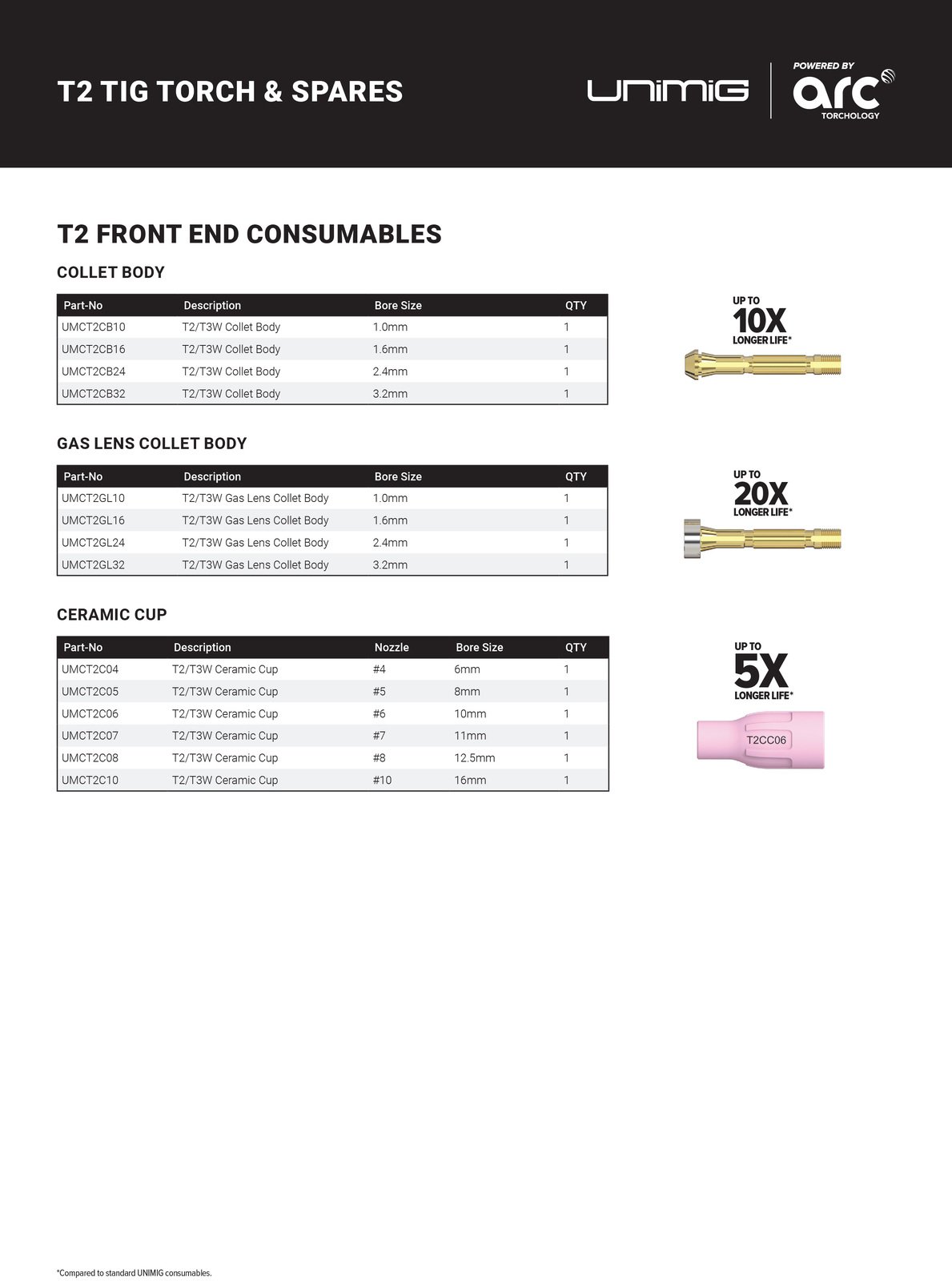 | Compatibility | T2 & T3W TIG Torches |
